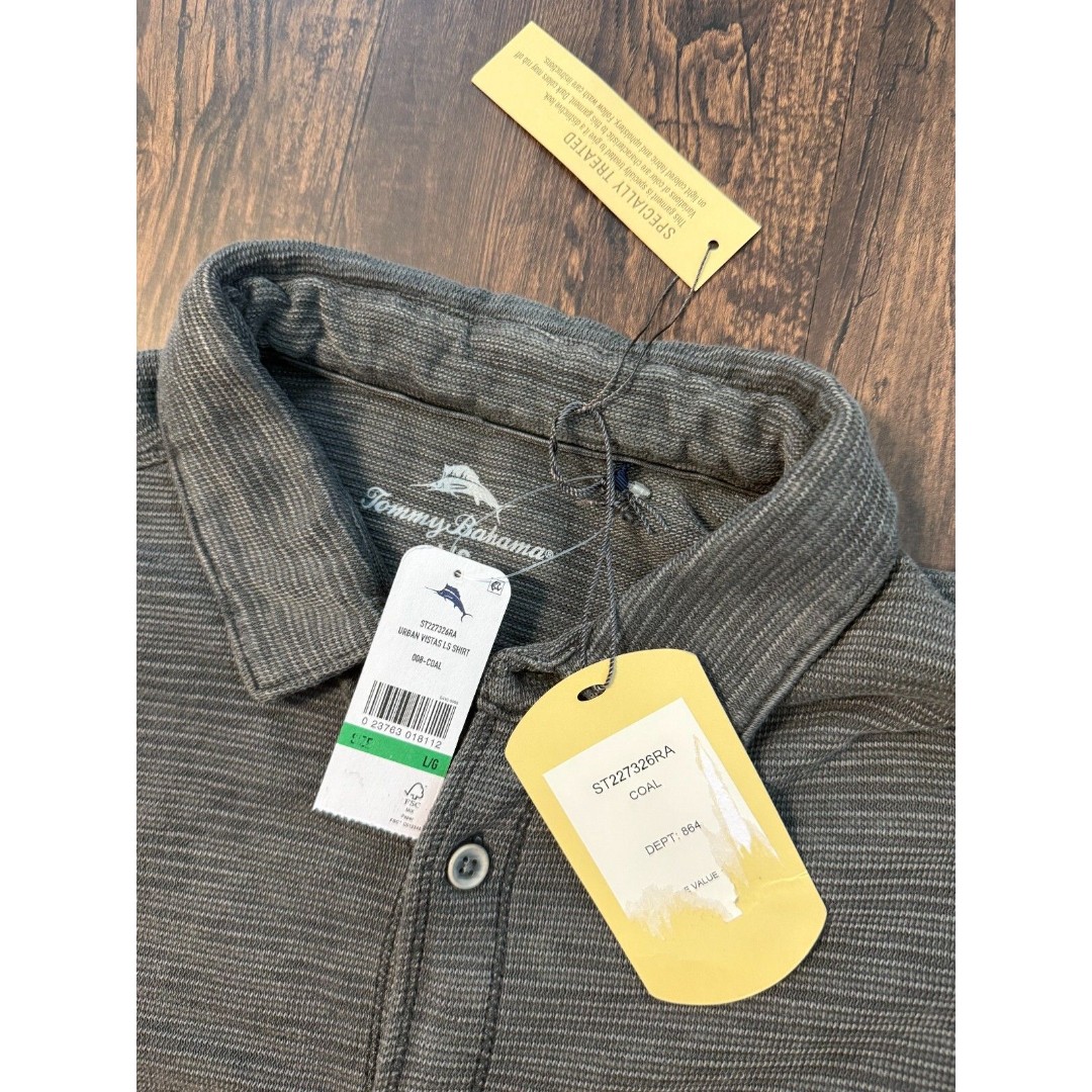 Tommy Bahama Shirt Mens Large Gray(Coal) Stretch Button Up Long Sleeve Urban 864