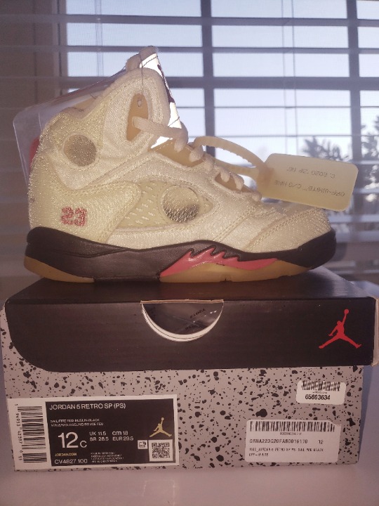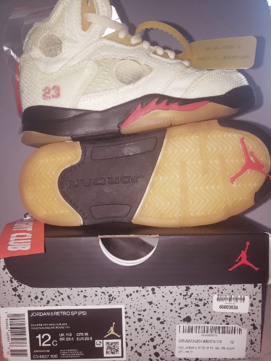 OFF-WHITE X AIR JORDAN 5 RETRO SP PS SAIL, Size: US 12 Y. Kid's Size. Make a deserving kid happy with these well built gems. Never worn, only touched for picture taking. 100% authentic, shop with confidence. Snatch quick, you won't find a better deal.